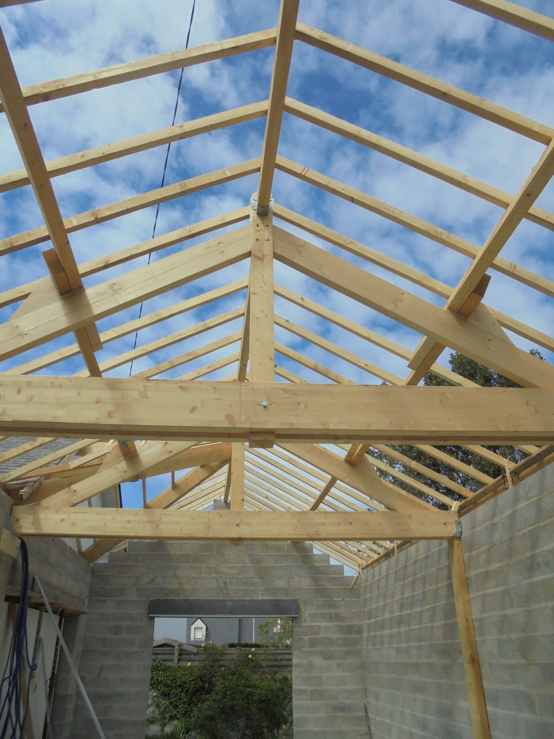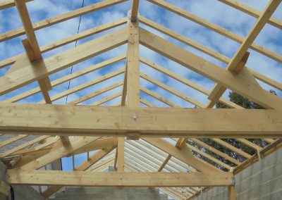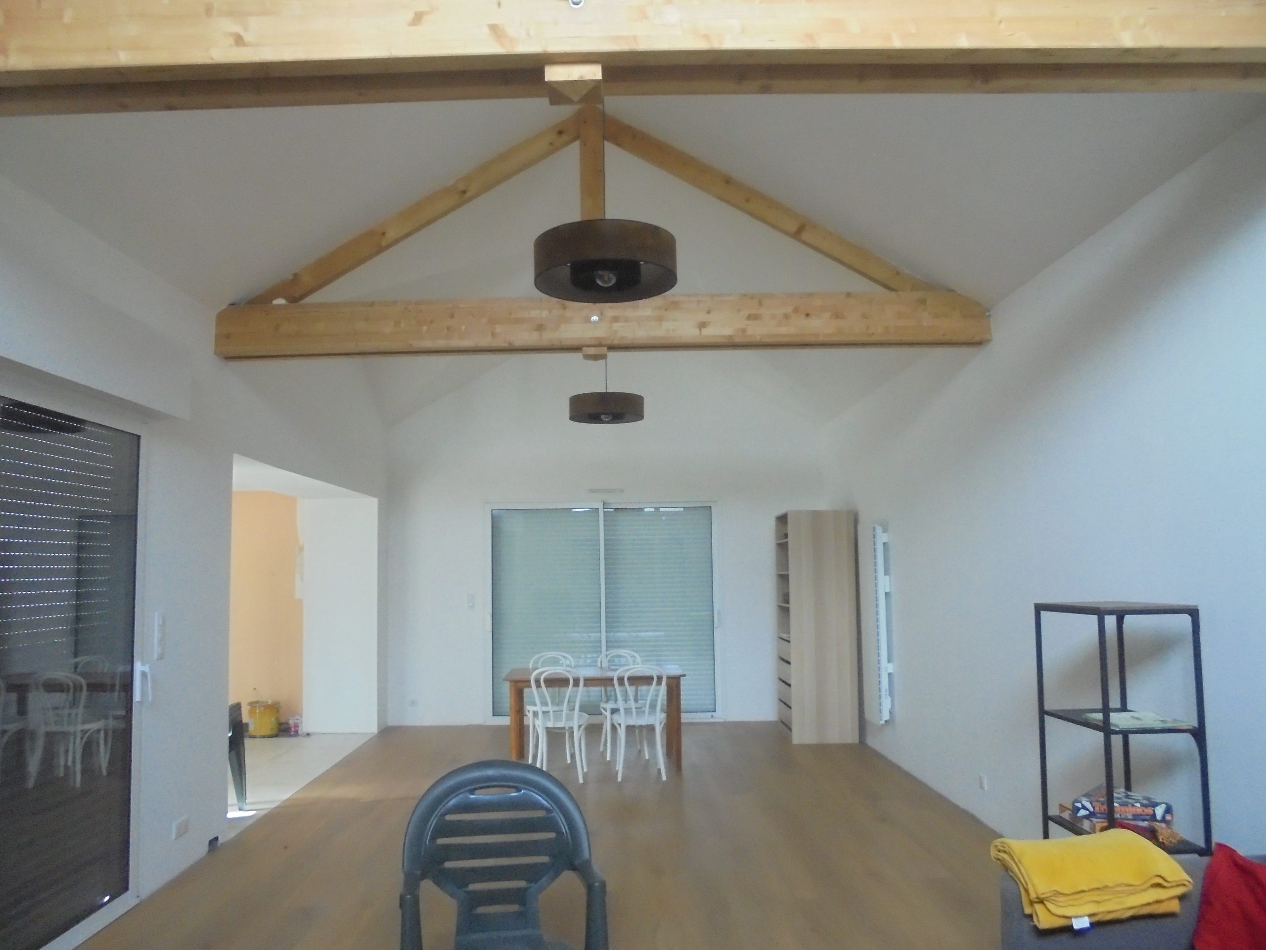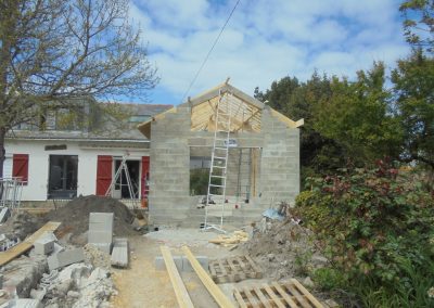 Extension de 60 m² pour créer une magnifique pièce à vivre avec la charpente apparente, permettant d’avoir un volume important.