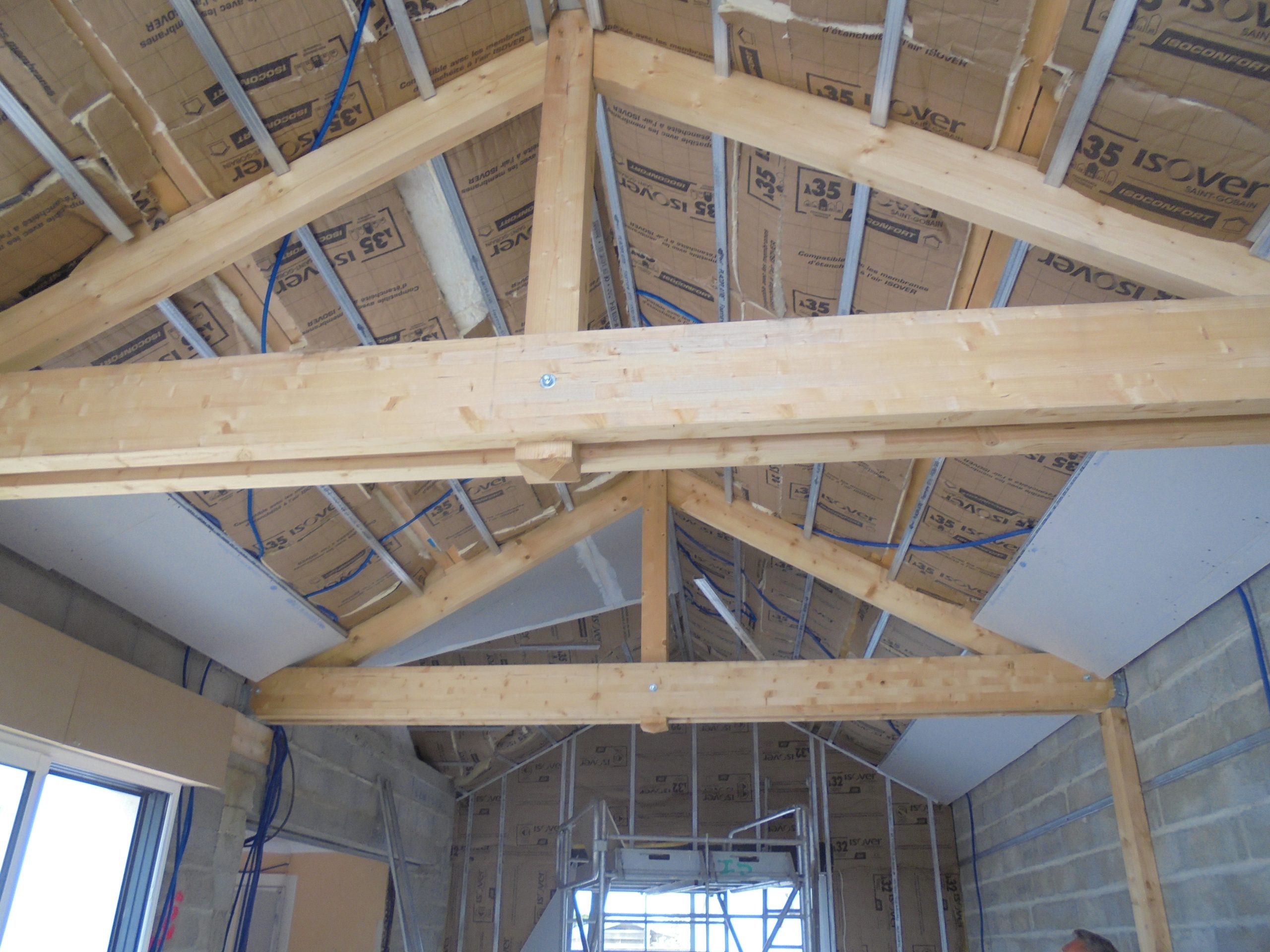 Rénovation énergétique de la maison en changeant toutes les menuiseries extérieures et réalisation des doublages isolés en laine de verre de 120 mm d’épaisseur.